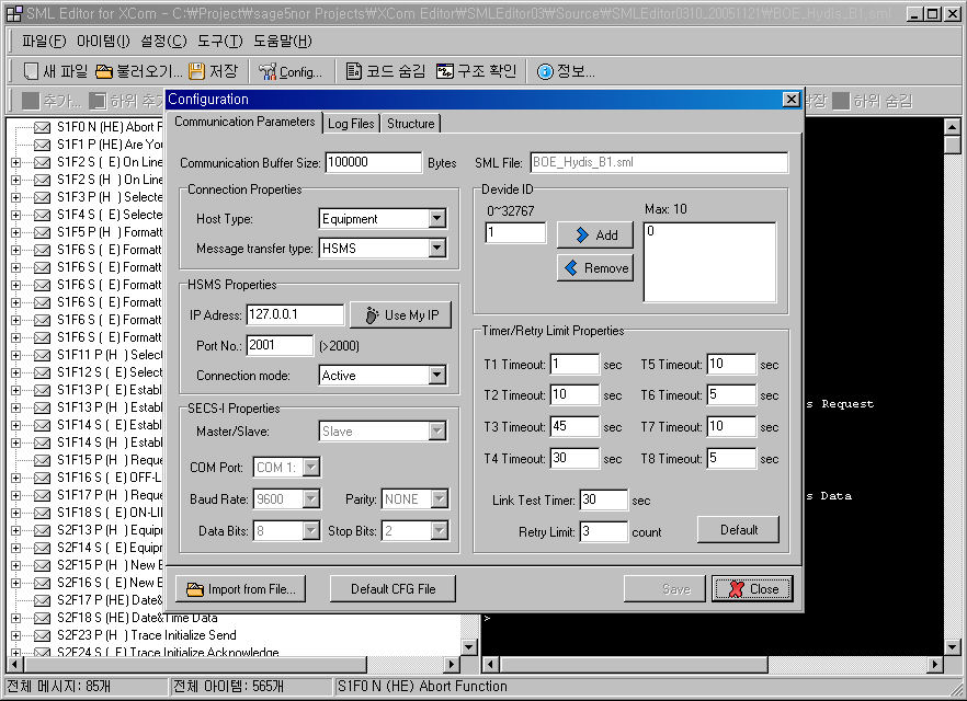 SML Editor는 XCom(반도체 통신용 S/W driver)에 사용되는 SML파일을 쉽게 작성, 편집할 수 있는 도구입니다.