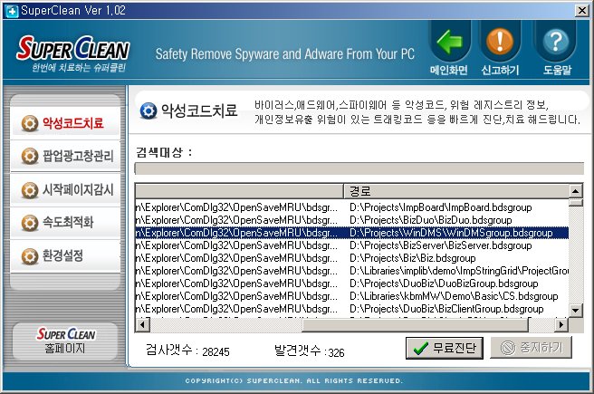 오늘도 모 블로그 사이트에 들어갔더니 이런 액티브X가 뜨더군요. 이름이 슈퍼클린이라나...