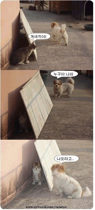 지나가던 개에게 들이대던 고양이가 있었습니다