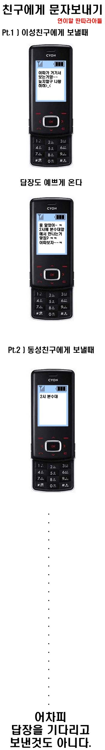 남자들한테는 문자. 아가씨들한테는 꼭 전화통화를 합니다.