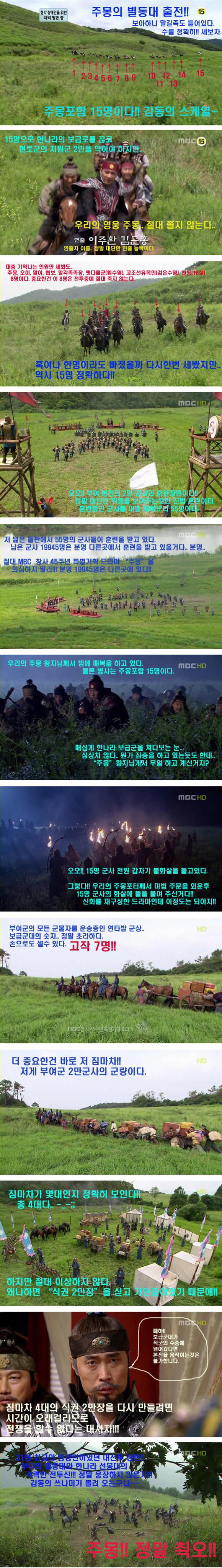 주몽은 이후 주변 열국을 정벌하면서 고구려로 나라 이름을 바꾸죠. 이것이 고구려의 시작입니다. 이전에 한나라는 해모수 단군께서 개국하신 북부여를 침략했다가 5대 단군이신 동명성왕에게 크게 패해 끽 소리도 못하게 됩니다. 한나라는 북부여에 조공을 바치던 나라고, 동부여는 북부여보다 작은 나라였습니다. 북부여 4대 단군 동생이 전쟁을 피해 도망가서 세운 나라죠. 북부여 동부여 등 당시 열국들은 대부분 우리 민족이 세운 나라였습니다. 지금 주몽은 한나라이후 계속된 동북공정의 결과물인 왜곡된 역사에 근거하고 있는 환타지 역사왜곡 드라마입니다. 해모수와 주몽은 생존년대가 무려 120년이나 차이가 나는데... 중국놈들의 수차례의 역사왜곡으로 우리는 엉터리 역사를 보고도 아무런 이상도 느끼지 못하는 비극적인 현실에 살고 있습니다. 관련 글 리스트