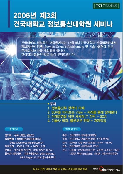 건국대 정보통신대학원에서 정보통신부 정책의 이해, SOA, 기술사 합격 등에 관한