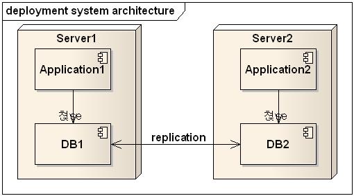 첨부 그림과 같이 Server1에 Application1와 DB1이 설치되고,
