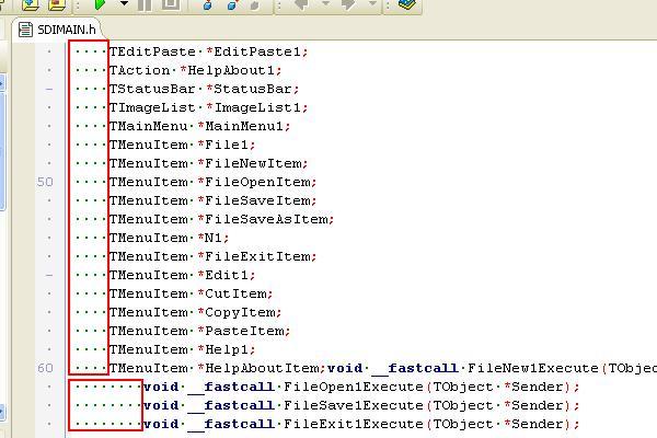 SDI, MDI 등의 프로젝트를 생성하고, 헤더 파일을 보니까 어떤 라인은 공백4로, 어떤것은 공백8 또는 탭으로 정렬되네요.
