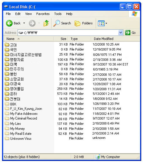 폴더명,숨길파일속성,size,Modified ..