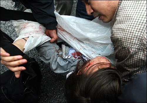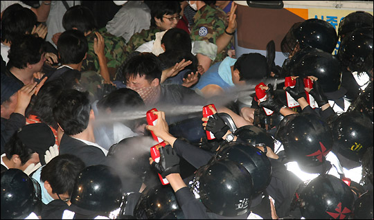 이명박이 돌아오니 역시 진압의 강도가 몇배로 뛰는 겁니까...