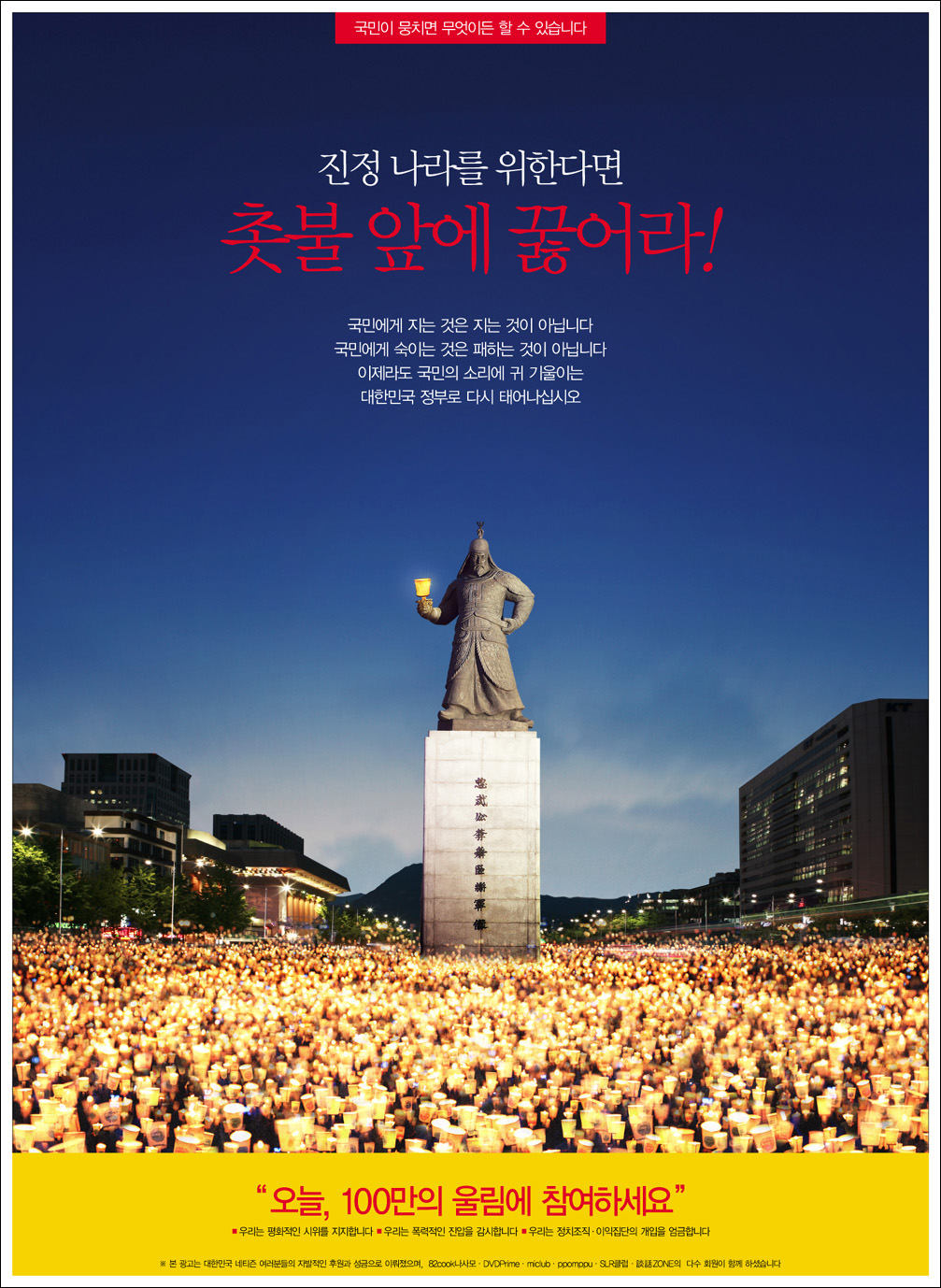 내일 퇴근후 저는 광화문으로 갑니다. 작고 보잘 것 없는 한사람이지만...