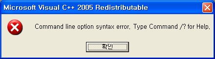 해당 문제 해결법에 관한 동영상을 제작하였습니다. 개인 서버 ftp에 올라가 있고요. 문제 해결과 문제 재발생 과정을 캡쳐한 영상이고요. /q 옵션의 사용법이 담겨 있습니다. 위의 댓글에 Lyn님께 '재배포 패키지라는게 있나요'라고 물으셨는데, 제가 링크 달아드린게 재배포 패키지예요--;;; 본 ftp는 passive mode를 사용하기 때문에 passive 모드를 지원하지 않는 firefox에서는 접근되지 않을 수 있습니다. internet explorer를 쓰세요. 문제 해결됐다고 하니 다행이네요.