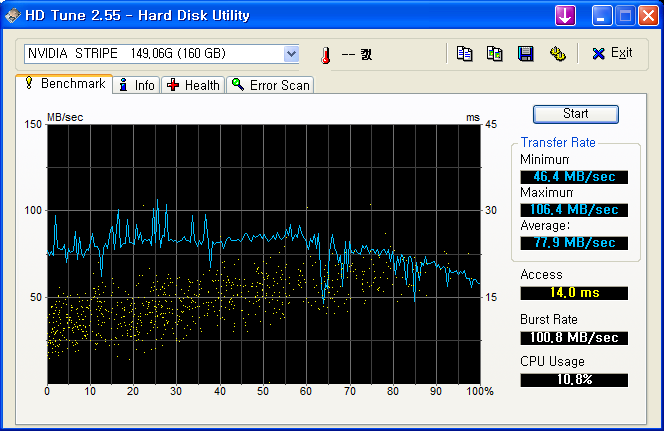 현재 EIDE에 한개, SATA에 2개가 붙어있는데, EIDE 한개랑 SATA 한개가 속도가 영 이상하네요.