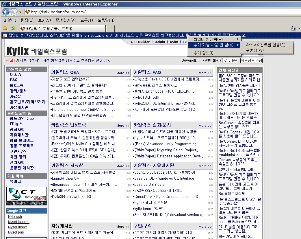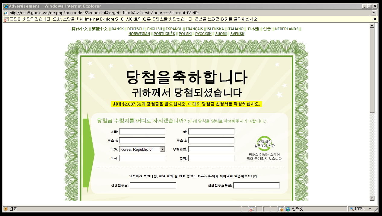 복구 하더라도 원상 회복이 힘드니 윈도우 재설치 권장드리고요. Active-X 서핑은 웬만하면 가상OS에서 하시기 바랍니다. Microsoft에서 무료로 배포하는 VirtualPC 라는 프로그램이 있고, 이 프로그램에서 쓸 수 있는 가상 Image OS 도 무료로 배포하고 있습니다. http://blog.naver.com/azena/90038976145 관련 글 리스트