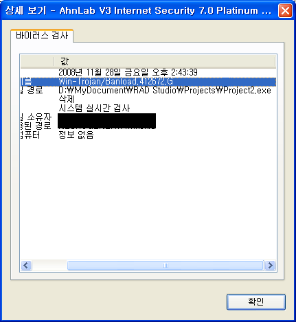 우리의 V3는 bsdLauncher.exe라는 델파이 런처를 바이러스로 인식합니다. 그래서 과감히 지우지요..