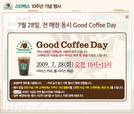 7월 28일에 한국 런칭 10주년 기념으로 공짜로 아이스 커피를 쏜답니다.
