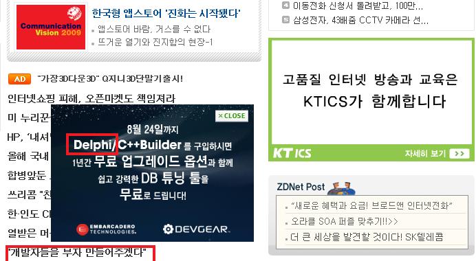 [잡담] ZD net에 빌더 / 델파이 광고 나왔네요