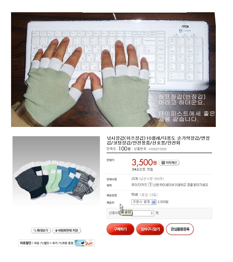 곳이 많을 것인데... 일하기 싫지요... 하프장갑 추천합니다. 타이프 하는 데 아무 이상없습니다.
