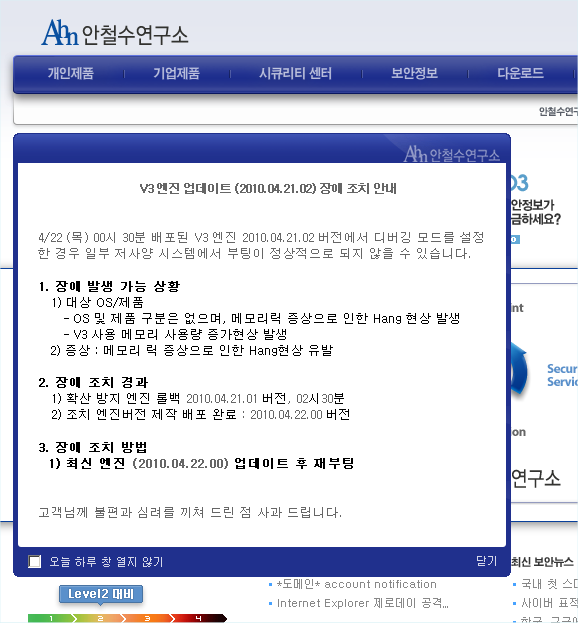 안연구소에 아래와 같이 공지가 떴네요.