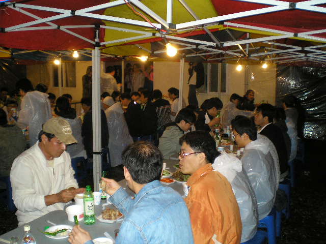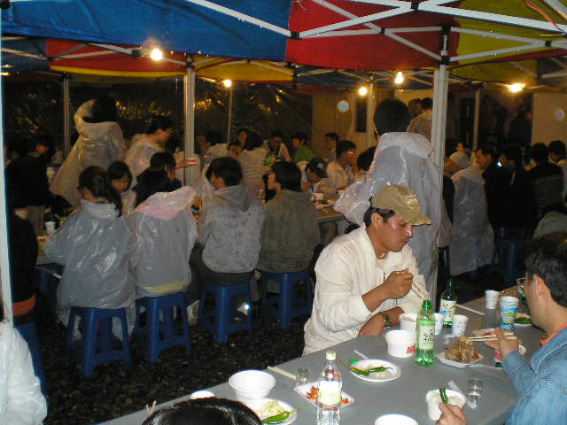 천막 여러개를 펼쳐서 저렇게 자리를 만든 겁니다.