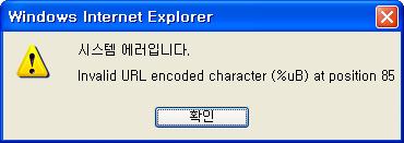 "Invalid URL encoded character (%uB) at position 85" 라는