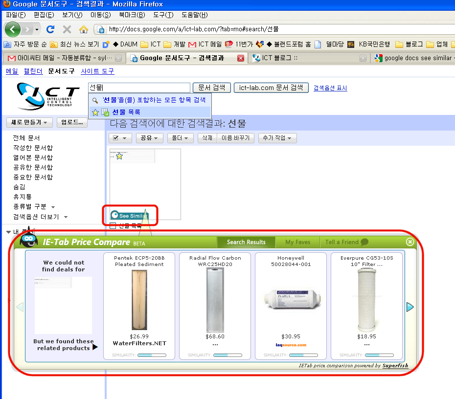 NOTE: Beginning with v1.95.20100930, IE Tab Plus now includes the optional Price Comparison feature powered by Superfish. Price Compare uses sophisticated visual search technology to find you deals while you shop on hundreds of U.S. merchant sites. This feature is by default disabled and will only be enabled in "Featured Mode" or "Advanced Mode". If you try it and still wish to disable the feature, just go to the Settings window and select Basic mode. However, if you really don't like this extra plugin, you can also uninstall this version and try a clean version: IE Tab Plus v1.95.20100930 (FF 3.6+, No Adware, Absolutely Clean), from AMO. This version is similar to older versions without the Price Comparison feature. 이렇게 적혀있내요 ㅎㅅㅎ;; Clean Version으로 재설치 하셔야할듯합니다 ^^;; 관련 글 리스트