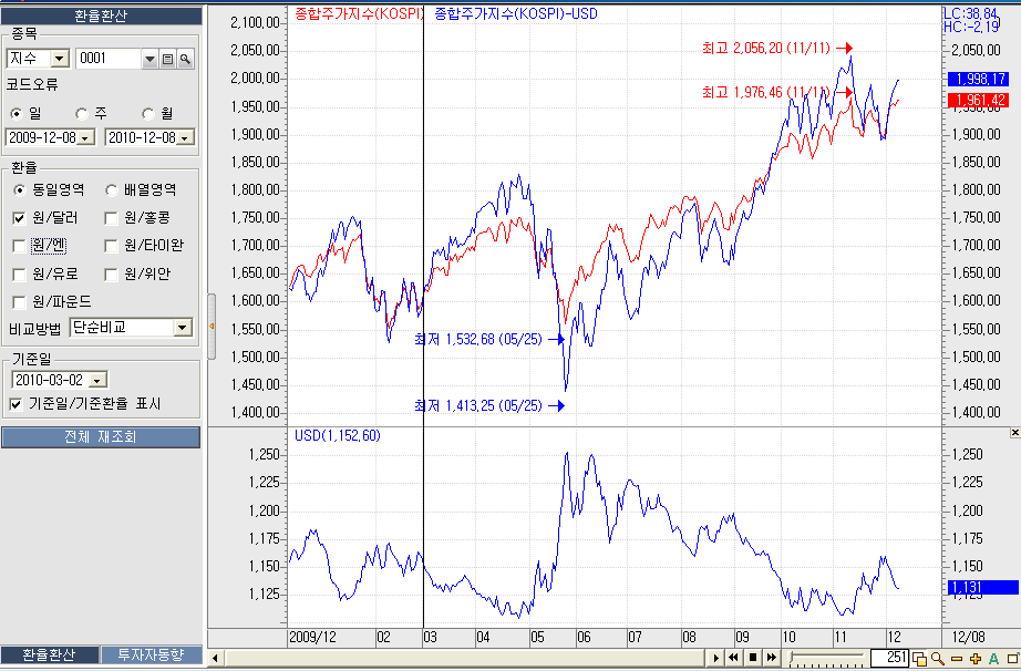 사실 원/달러 기준으로 이미 11월에 2천 포인트가 넘었습니다. 결과는 외국인들의 대 매도... 행렬... 1400~1500 포인트에서 산 외국인들이 충분한 수익을 거두고 나간 것이지요...