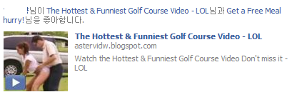 몇시간 사이 제 지인들의 페이스북 글들을 통해서 자동화된 낚시 스팸이 급속도로 퍼지고 있습니다. (아마 저한테서 전염되신 분도 있을 거 같네요) 골프 관련의 좀 므흣한 동영상인 것처럼 보이는 링크인데 클릭만 해도 해당 낚시 페이지에 대한 '좋아요' 등록이 되며, 덩달아 다른 여러 광고성 페이스북 계정으로의 '좋아요' 등록까지 됩니다. 부차적으로 등록된 좋아요의 페이지들도 마찬가지로 전염성이 있습니다. 저도 한번 클릭했다가 줄줄이 '좋아요'가 올라와서 당황했습니다. 프로필에 들어가서 일일이 삭제하기는 했습니다만, 여러분도 잘 아는 지인이라고 해도 갑자기 좀 의아한 광고성 글에 대해 '좋아요'가 올라오면 클릭하시기 전에 주의하시기 바랍니다.