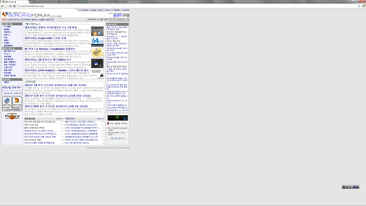 27인치 LCD에서 볼랜드포럼을 열어보니, 광활한 모니터의 한쪽 구석탱이에 쪼그려 앉은 볼랜드포럼...