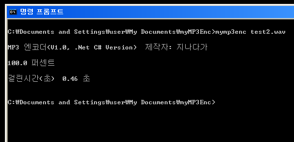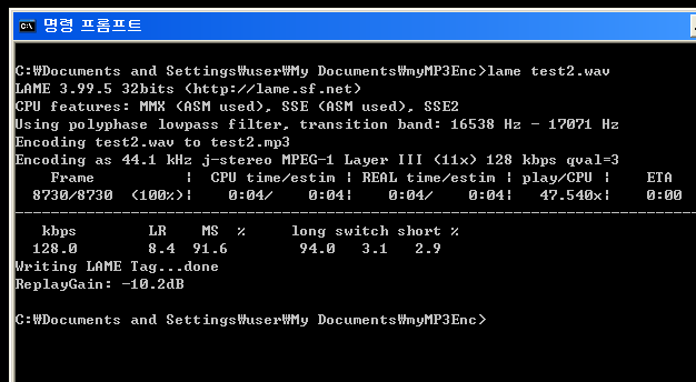 LAME으로 하면 4초 걸리구요