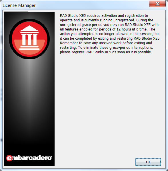 C++Builder XE5를 사용하다가 막히면 RAD STUDIO XE5로 다시 키를 받아서 쓰면 계속 이어집니다.