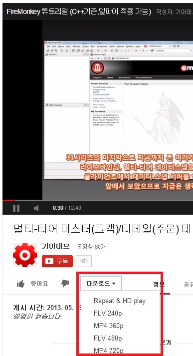 영상과 음성 원하는 포맷으로 선택해서 받을 수 있고, 본 동영상의 경우 최대 MP4 720P 포맷(73.8MB)으로 받을 수 있다.