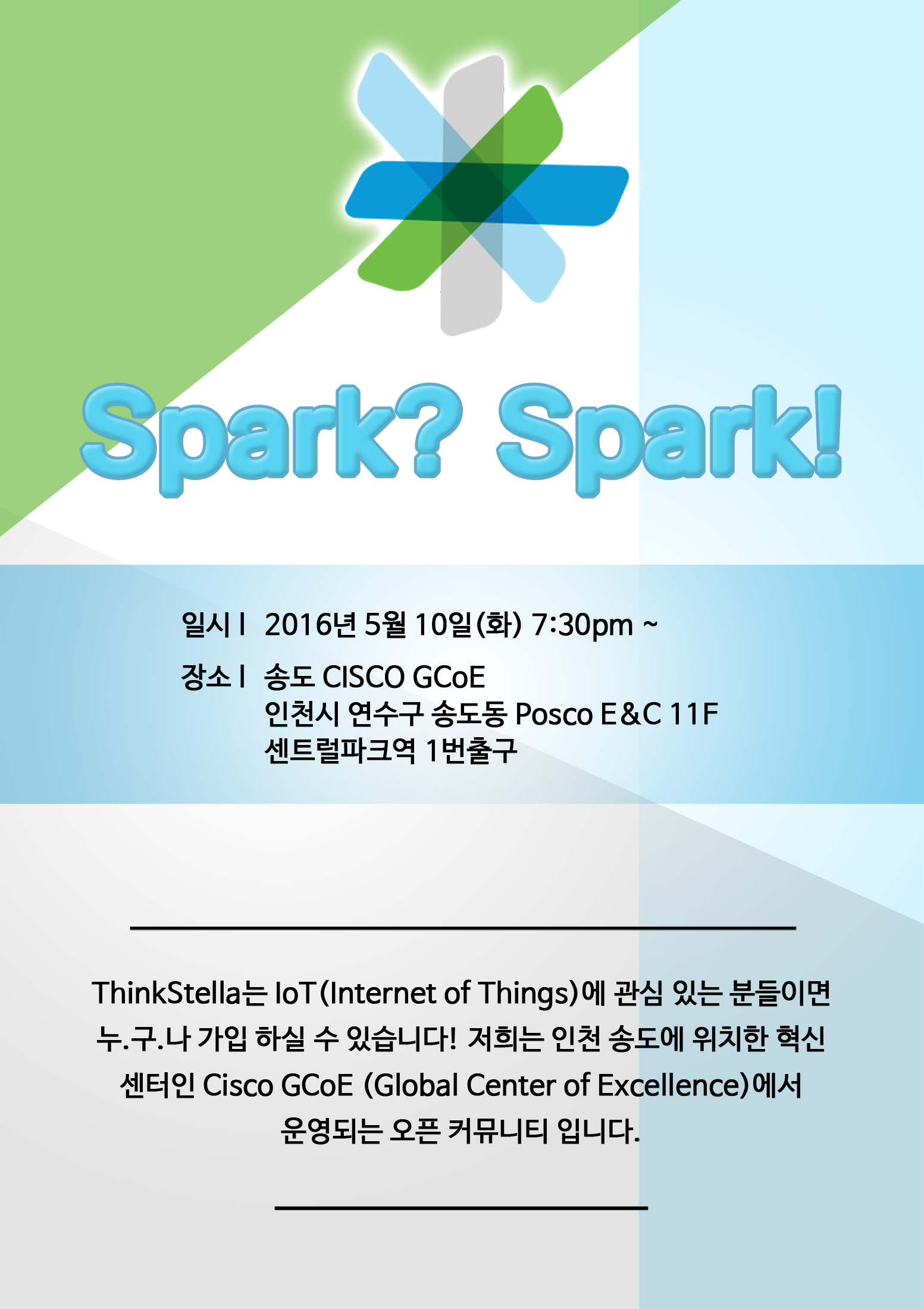 모임장소 : 인천 연수구 송도동 36번지 포스코 E&C 타워2, 11층 CISCO GCoE