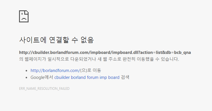 혹시, 보여주신 것처럼 연결 실패가 될 때 볼랜드포럼 메인으로 이동하면 어떤지 알려주실 수 있으신지요.