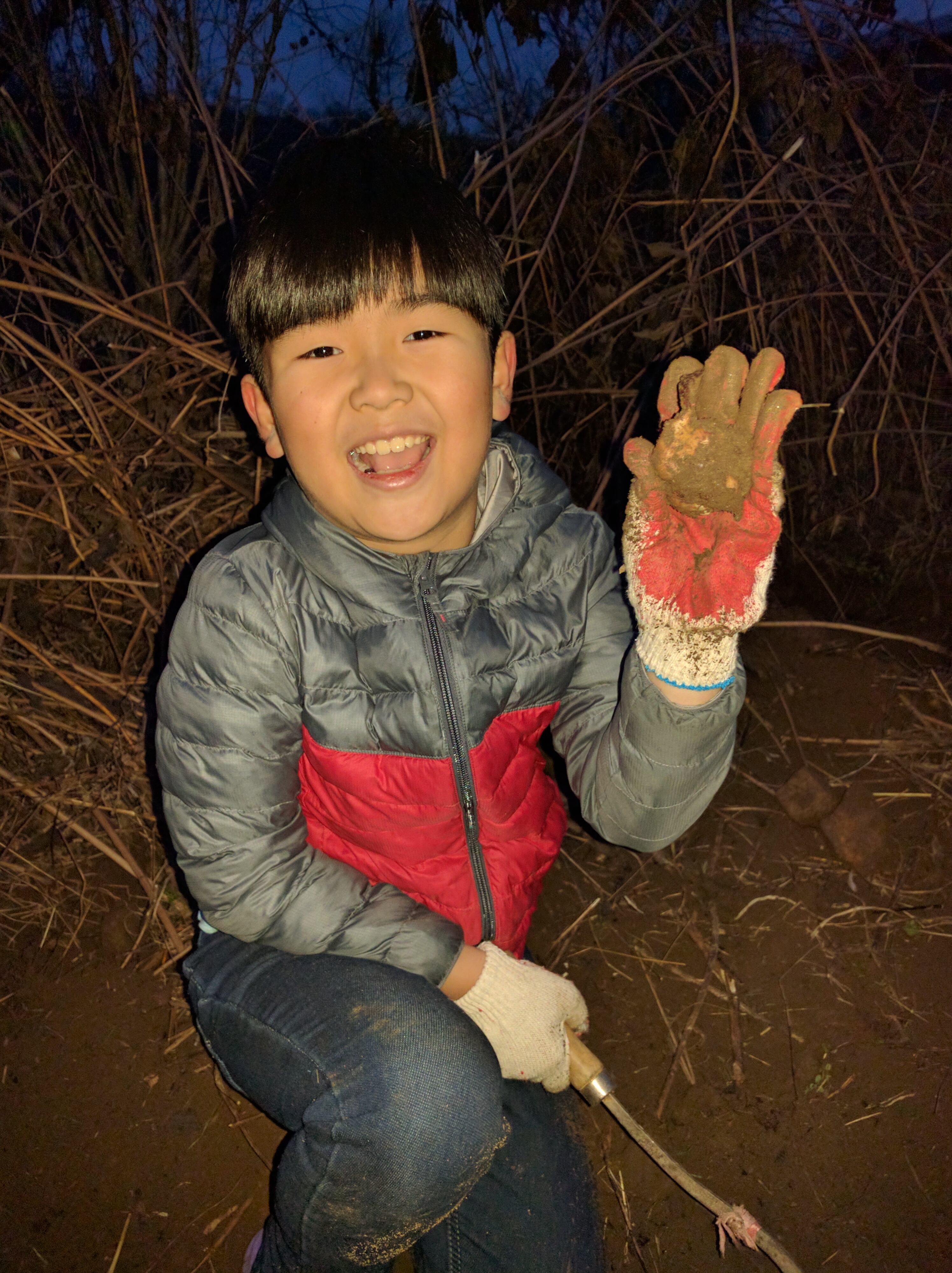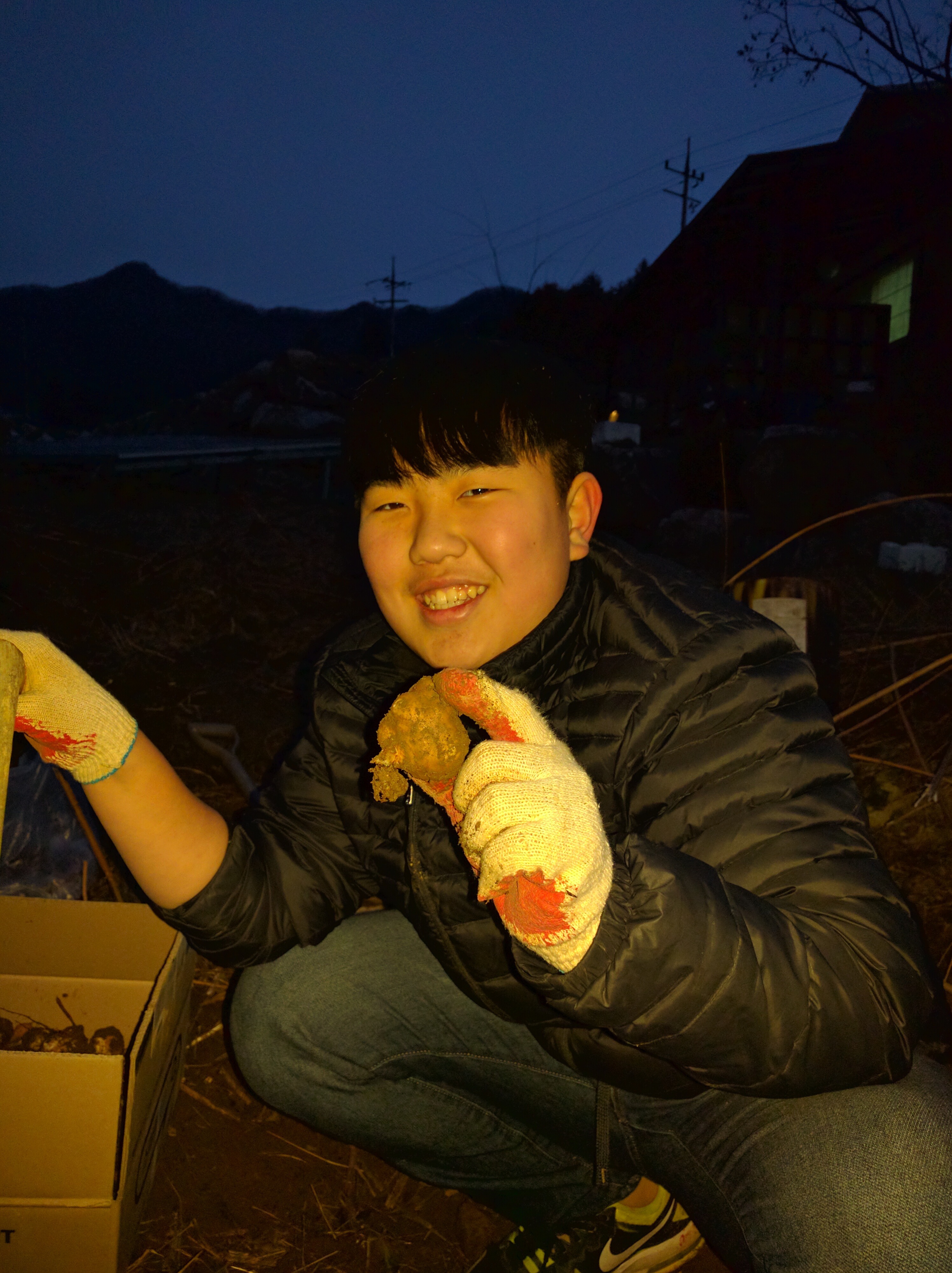 그 얘기를 마눌님에게 했더니, 당연히 본인도 잡수시겠으니 더 캐오랍니다. (이번엔 흥부전 내지 콩쥐팥쥐 비슷해져가는..) 그래서 한 4~5일 동안 매일 오후마다 두어시간씩 집앞 풀밭을 박박 기면서 돼지감자를 캤더랬습니다. (사진을 보시면 아들들이 꽤나 도와준 것처럼 보이겠지만.. 사실은 할머니 할아버지 보여드리기 위한 연출입니다 ㅜ.ㅜ) 반쯤 얼어있는 땅을 호미와 삽으로 깨가며 캐낸 돼지감자가 무려 45kg 정도 됐습니다.