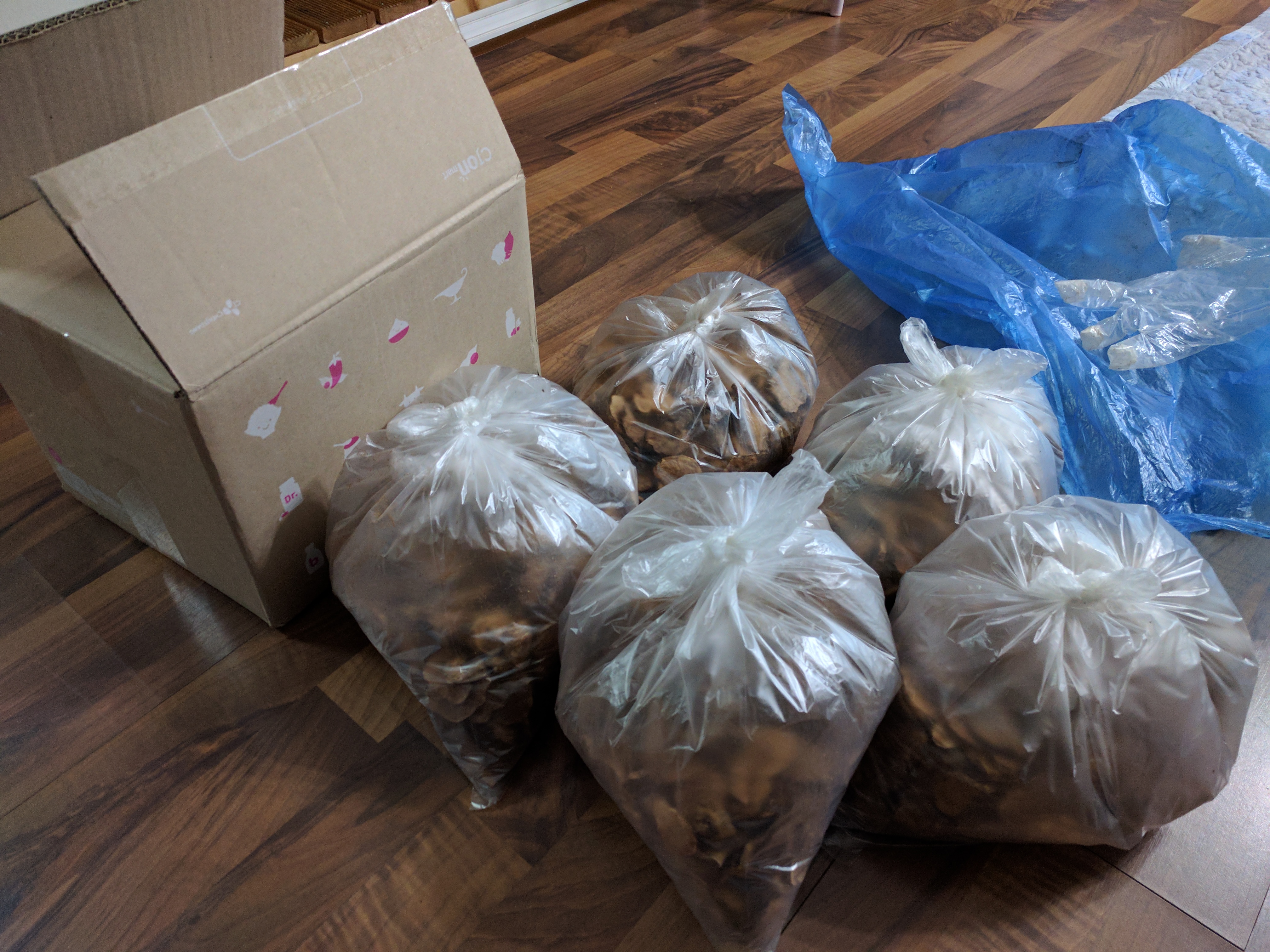 이걸 절반 정도는 어머니 아버지 보내드리려고 박스에 싸고, 나머지는 작은 봉지에 소분해서 잘 담아뒀습니다. 이정도면 내년에 다시 돼지감자를 캘 겨울이 올 때까지 먹고도 남겠네요.