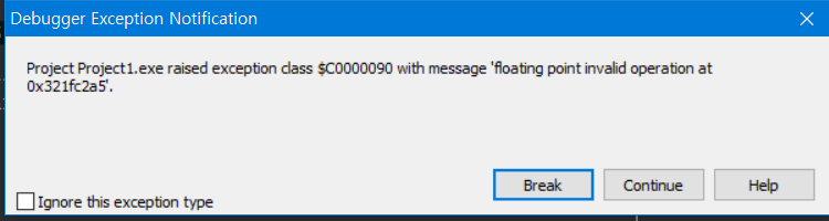 아래와 같이 floating point invalid operation 예외가 발생하는 것은