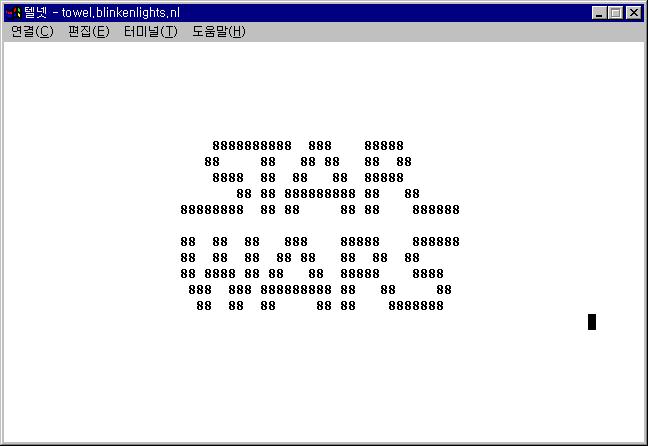 주소는 telnet://towel.blinkenlights.nl 입니다.(텔넷 크라이언트를 사용하시거나 아니면 윈도에