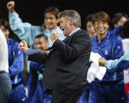 - 히딩크와 그들..국가대표팀 모 두 호텔 로비에 앉아있었다. 이태리와의 시합에서 이긴 후였 지만그들은 스페인과의 경기를 앞두고 히딩크를 향해 물었 다."스페인과의 경기에도 냉정할 수 있나요?" "난 지금 한국의 감독이다. 냉정하지 못할 이유는 없다" 라고 대 답하자 이천수가 묻는다."이번 월드컵이 끝난후 한국을 떠나 다른나라의 감독이 되어다음 월드컵에서 만난다면 우리와 싸 우게 되겠죠?" "..." 그 질문에 히딩크는 아무런 대답을 하지 않고 조용히 있자나지막한 목소리로 이영표가 묻 는다."그 때 우리를 다시만난다면 우리를 적으로서 바라보게 되는건가요?""아니 그렇지 않다물론 시합 도중에 새로맡게된 팀이 골을 넣게된다면난 물론 기뻐할 것이 다.하지만 너희들이 골을 넣는다면 난 내색하진 못하겠지만 속으로는 자랑스러워하며 또 한편으로 응원할 것이 다.내가 이곳을 떠나도 난 언제까지나 한국팀의 감독이고 떠난 후에도 난 한국팀의 감독이 다.""..."멤버들 모두 히딩크의 말을 듣고 시야가 흐려지는 것을 느끼고 고개를 숙였다.늘 개 구쟁이만 같던 이천수가 조용히 묻는다."그 때 우리 한국팀 이 이기던 지던 상관없이... 또한번 우리를 안아주실수 있나 요? 승부에 관계없이 우리를 안아줄 수 있나요?"이 천수에 말에 모 두 고개를 떨구고 울먹이며 아무말도 하지 못했 다.히딩크도 잠시 침묵 을 지켰다. 히딩크의 눈은 빨개지면서 눈엔 눈물이 가득 고였다. 그리 고 히딩크는 선수 들에게 다가가 모두를 한자리에 모아 꼬옥 안아주며 떨 리는 목소리로 말했다."...sure"