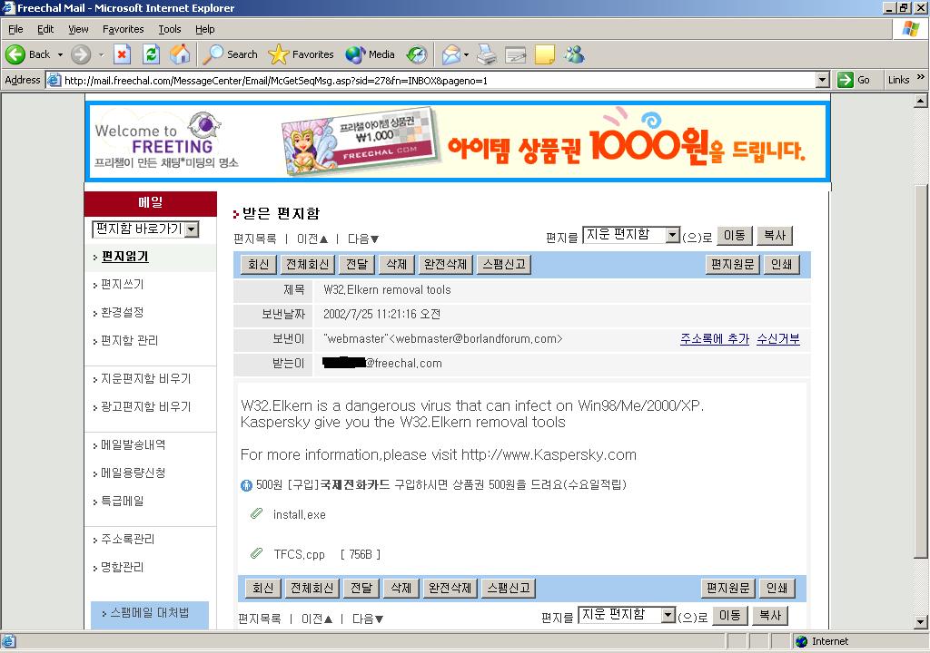 "나는 바이러스다"라고 써있는듯한 멜이네요 ^^;