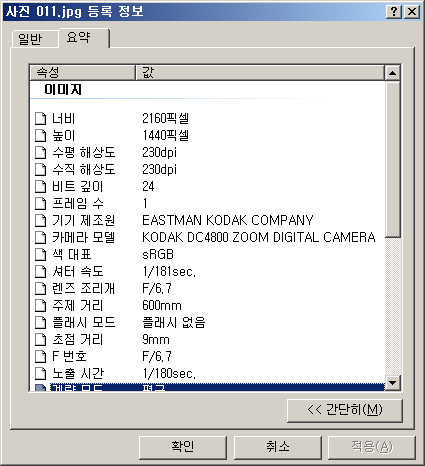 다른 정보들도 추가됩니다. 윈도 탐색기에서 "등록정보 - 요약" 메뉴를 선택하면 볼 수 있는