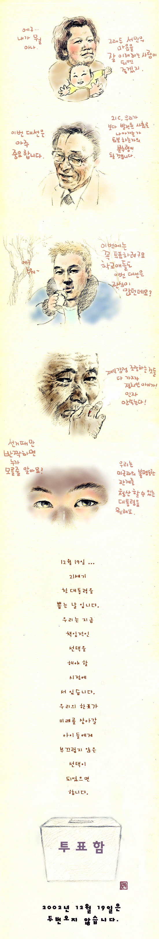 부동표가 아직 전체의 20%나 된다고 하더군요. 많은 분들이 누가 대통령이 되든 실제로 달라지는