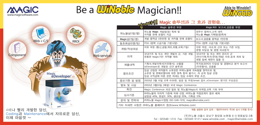 (주)위노블에서 현상 공모를 실시합니다.(주)위노블은 국내 독점 총판 계약을 체결한 이스라엘 매직소프트웨어사 (www.magicsoftware.com)의 개발툴인