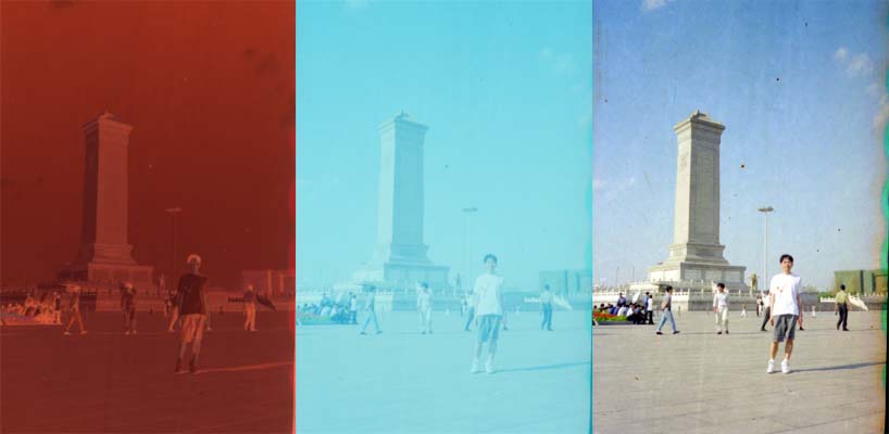7. 반전시킨 화면은 푸른빛이 도는 괴상한 화면이 나옵니다. 이유는, 필름 자체가 오렌지색으로 처리되어 있기 때문이죠. 당연히 색상 보정을 해 줘야 합니다.