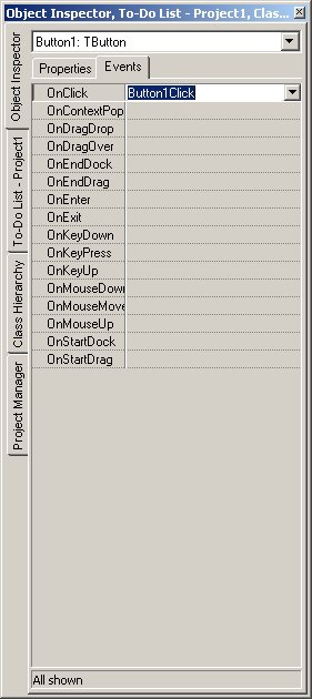 오브젝트 인스펙터의 이벤트 클릭시 나타남