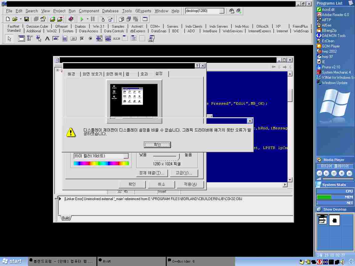 그리고 빌더를 뛰우면 컴포넌트 팔레트부분을 못 그려서 생기는 Bound Check error (216번)