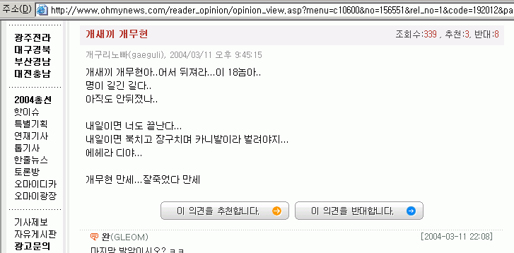 오마이뉴스에 잠시 갔었는데 이런 게시물이 있군요.