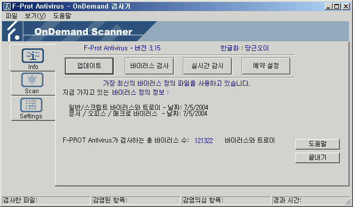 윈도XP SP2 RC2 버전을 사용하는데요, 바이로봇 같은 경우는 등록된 안티바이러스 프로그램으로 인식하지 못하더군요. 찾다가 보니 F-Prot가 충실하면서도 가볍고 그리고 검색속도도 빠르다고 해서 설치해 봤습니다.